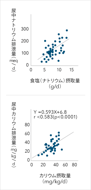 尿中排泄量を生体指標として扱う研究は、1950年代頃から始まり、栄養摂取状況を高精度に知ることができる調査法として進化してきました。水溶性ビタミン・ミネラルの摂取量と尿中排泄量においても妥当性が証明され、日本栄養・食糧学会や厚生労働省に研究成果を発表しています。