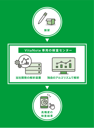VitaNoteの解析に特化した専用の検査センターを設置。独自に開発した機器及び解析方法により、従来の解析方法と比較し精密度・正確度において高精度な解析を実現しています。